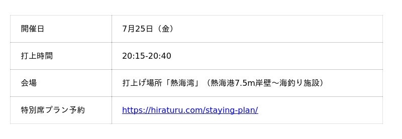 【夜空と海に咲く大輪の華】熱海海上花火大会7月25日(日)開催!特等席確約の送迎付きプランの販売中。夏の繁忙期は人気なので、ご予約はお早めに!