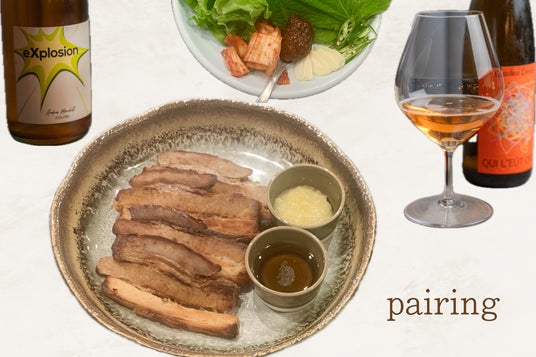ハーブと柑橘をまとったサムギョプサルは、ナチュラルワイン(自然派ワイン)の繊細な酸と香りが絶妙にマッチ。素材のもつ "自然な美味しさ" を、ワインとともにやさしく引き立て合います。