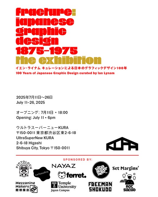 UltraSuperNewは、東京・渋谷のオフィス併設のオルタナティブスペース「Kura」にて、2025年7月11日(金)から7月26日(土)まで、展覧会『Fracture: Japanese Graphic Design 1875-1975』を開催いたします。