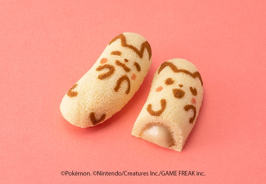 かわいさマックスの「ピカチュウ東京ばな奈」は、愛くるしいピカチュウ模様に焼きあげたふかふかスポンジケーキに、「ナナのみ(※)」をイメージした"ナナのみ風とろ~りバナナカスタードクリーム"がたっぷりはいっています。ピカチュウとおやつタイムを楽しんで!