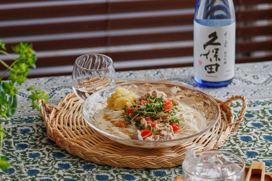 豚しゃぶトマトのごま豆乳そうめん×久保田 千寿 純米吟醸