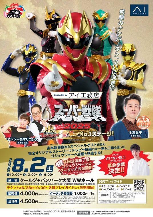 昨夏に続き、吉本新喜劇と1日限りのスペシャルステージが開幕! スーパー戦隊スペシャルライブ2025 ナンバーワン戦隊ゴジュウジャー 愛と笑いのNo.1ステージ Supported by アイ工務店
