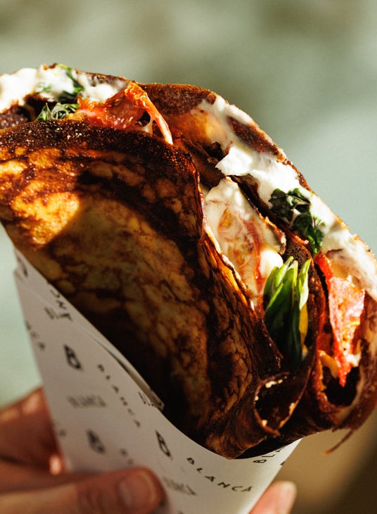 麻布台ヒルズ店限定の看板メニュー「焦げを楽しむクレープ」は、おかげさまで多くの食通やリピーターにも愛され、特に広告宣伝を行っていないにも関わらず、SNSや各メディア・ラジオでのご紹介も後押しとなり、オープンからわずか2か月で累計販売数15,000枚を達成し、連日行列が出来るほどの人気商品となりました。会期延長に伴い、より多くのお客様におたのしみいただけるよう、新たにお食事系クレープ「バジルトマト&チーズ」と、「BLANCA CHEESE CREPE(ブランカチーズクレープ)」にBLANCA初となる自家製ジェラートを添えたスペシャルなメニューを追加いたします。