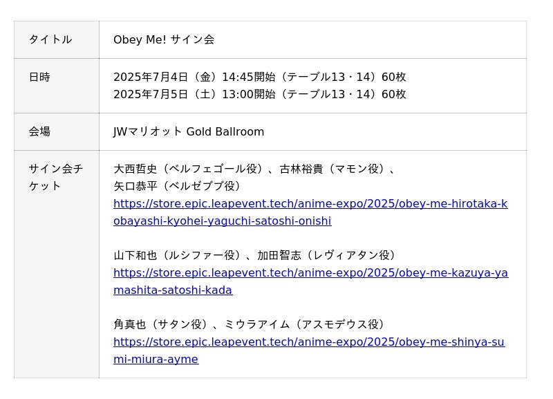 北米最大のアニメイベント「Anime Expo(R)」にて 1,100万DL突破の大人気乙女ゲームアプリ「Obey Me!」3Dバーチャルライブ&サイン会を開催