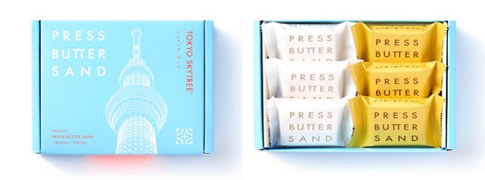人気の観光スポットである「東京スカイツリー」。そのふもとにある「PRESS BUTTER SAND 東京ソラマチ店」限定で発売する詰合せは、東京スカイツリーを大胆にデザインした印象的なパッケージです。スカイブルーの青空にそびえ立つような姿が、旅の記憶を呼び起こす特別な一箱に仕上げました。