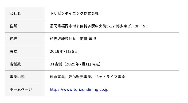 同社は、九州産「華味鳥」を養鶏から加工、商品開発、販売、飲食店の経営までワンストップで手掛けるグループ会社で、水たき専門店「博多華味鳥」を中心に飲食店を国内外31店舗展開しています。