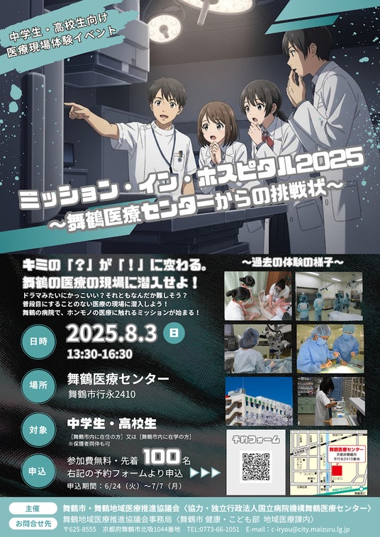 【8/3(日)開催】中学生・高校生向け医療現場体験イベント「ミッション・イン・ホスピタル2025」~舞鶴医療センターからの挑戦状~