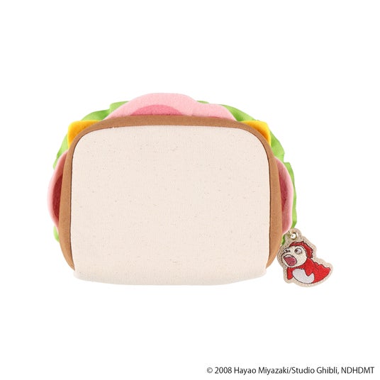 映画『崖の上のポニョ』の作中で、宗介がポニョにあげたハムサンドをポーチにしました。パンのふんわり感を出すために中にクッションを仕込ませたり、ハムやチーズを厚みのあるフェルト生地にしたりと、リアルな質感を表現するためのこだわりが詰まったアイテムです。