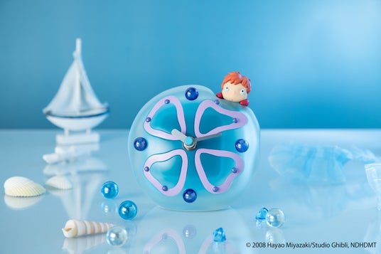 クリア素材のクラゲが涼しげな印象の「崖の上のポニョ ポニョのクラゲ置時計」は、クラゲとポニョの質感の違いを引き立てるポーズと形状、文字盤に本物のビー玉を使用するなどさまざまな工夫が凝らされたアイテムです。