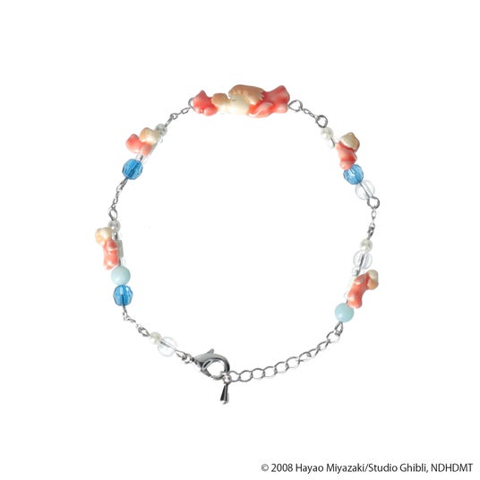 ポニョやいもうとたちのほほえむ表情がかわいらしいモチーフが付属するアクセサリーシリーズからは、「ブレスレット」「リング」「ピアス」「イヤリング」がラインアップ。陶器のような着色で作品のあたたかな雰囲気を表現し、天然石やビーズ、シーグラス風のガラスパーツなど海を意識した素材選びにもこだわりました。
