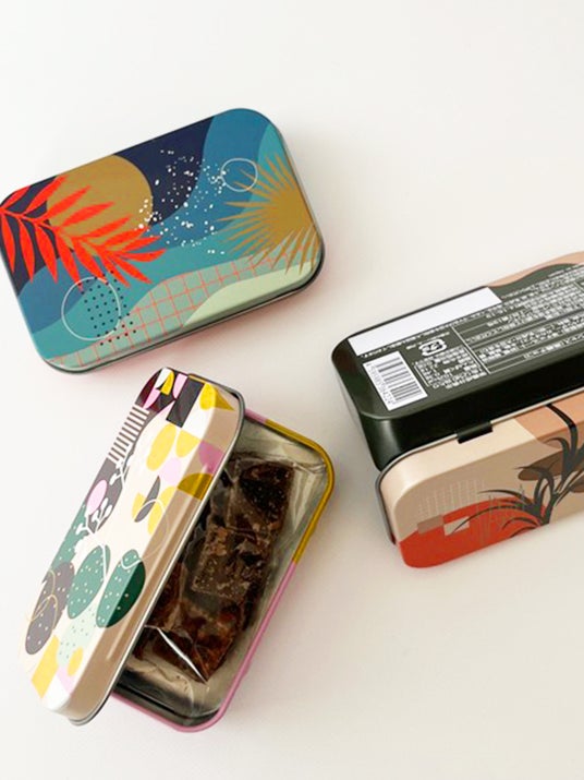 黒糖チョコレートを「缶入り」にすることで、これまでにない新しいスタイルを確立しました。単なるお菓子ではなく、"アート缶"という位置付けで、パッケージそのものにも価値を持たせています。