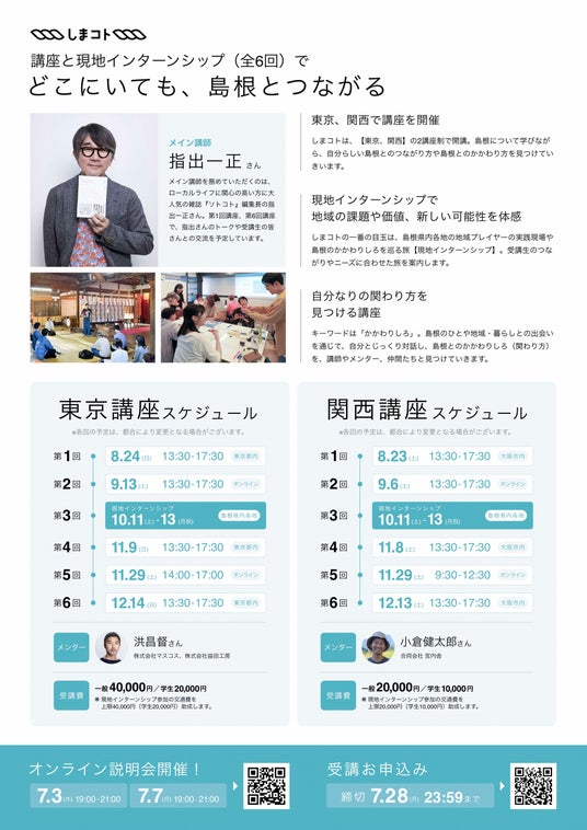 ※詳細は、添付資料とホームページ参照【しまコトアカデミー (https://shimakoto.com/)】して下さい。