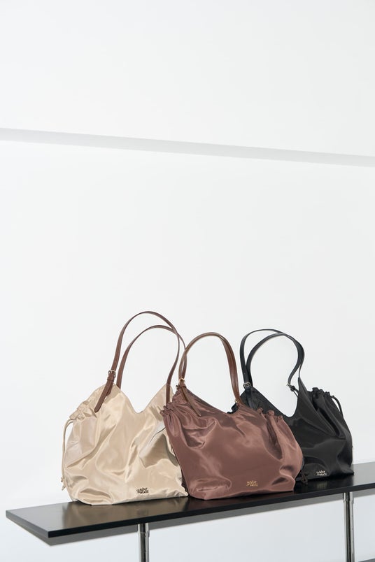 コードチャーム付きのショルダーバッグや、背面でも肩掛けでも持つことができる2WAYバッグなど、デザイン性と機能性を兼ね備えたラインナップです。シーンに応じて使い分けられる実用性と、さりげないアクセントになるディテールが魅力です。