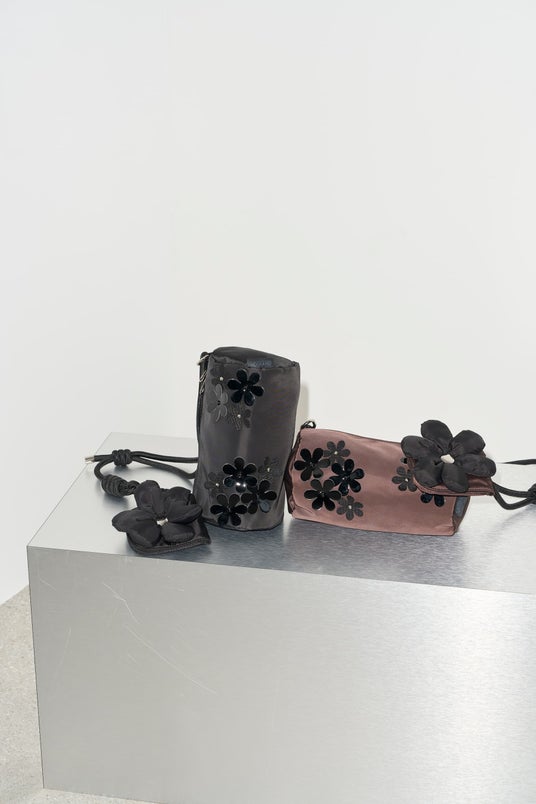 「FLOWER コレクション」はアイコニックな花モチーフにブラックとブラウンのシックなカラー使いで洗練さを加えました。花モチーフのパッチはエナメル素材と布帛素材の異なる風合いを組み合わせ、立体感と表情の豊かさを演出しました。