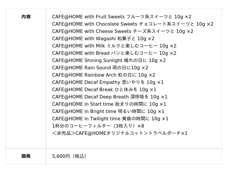 【送料無料】夏の福袋 CAFE@HOME飲み比べセット 限定オリジナルトラベルポーチ付き ¥5,600(税込)