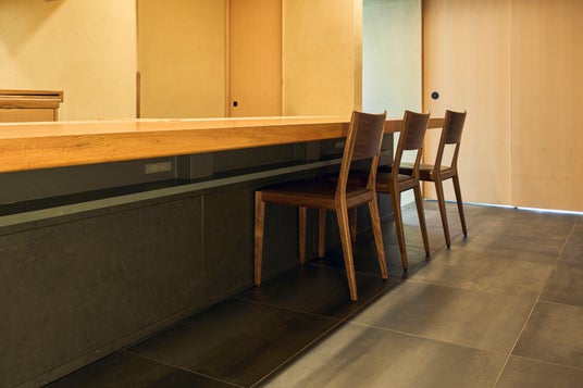 上質な空間の意匠を損なうことなく、足元からのおもてなしを実現。厚さわずか13mmの薄型パネルヒーター『ATTA-COUNTER』は、あらゆる内装に自然に溶け込み、「記憶に残る心地よさ」を創造します。(画像は「天 よこた」店内写真)