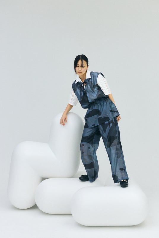 「FORME」をテーマに、作家としての現在の心境を反映させたアート作品を、ベーシックなシルエットを基調として制作しました。