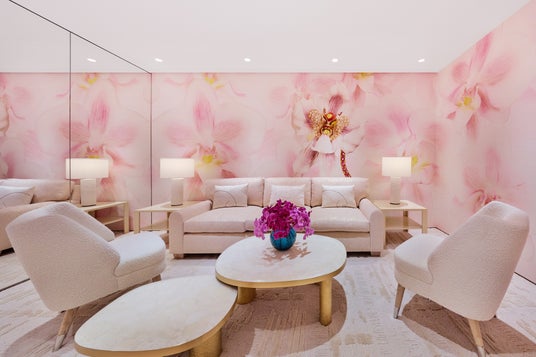 プライベート サロンには、同じく、ティファニー 大丸京都店のために制作された京都由来の上質な織りで仕立てたソファが置かれます。蘭の花を描いた壁紙と美しく調和し、文化の系譜が息づく空間で、ラグジュアリーなひと時をお過ごしいただけます。