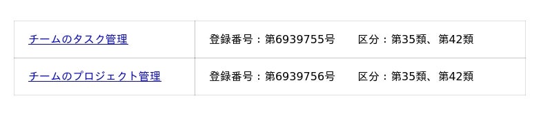 チームのタスク管理、チームのプロジェクト管理の商標取得
