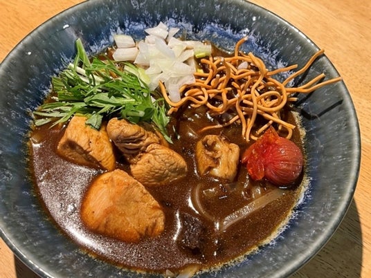 湘南の人気スープカレー専門店が挑戦する新作は、インド発祥のカシミールカレーと、タイ北部のカオソーイ(カレーヌードル)を融合させた新しいスタイル。鋭いスパイス感とココナッツミルクのまろやかさが織りなす深みのある味わいと、麺の食べ応えが特徴です。まさに伝統と革新が交差する、注目の一皿です。