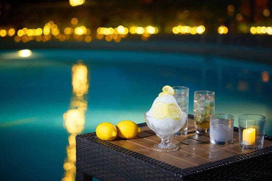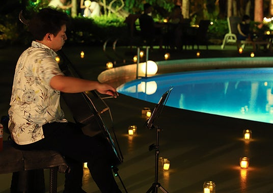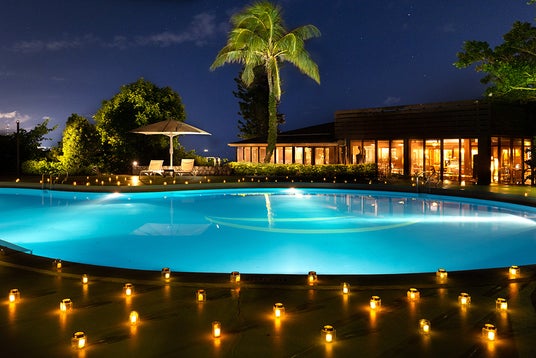 南国リゾートのプールサイドで、夜のイベントを愉しむ