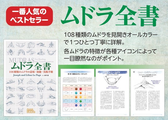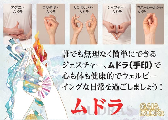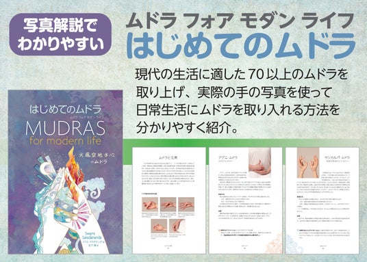 『ムドラ全書』、『ムドラ瞑想』、『フィンガーヨガ ムドラ』、『ムドラ手札』に続く、ガイアブックスによるムドラ関連書の最新刊『ムドラ フォア モダン ライフ はじめてのムドラ 』6月30日発売