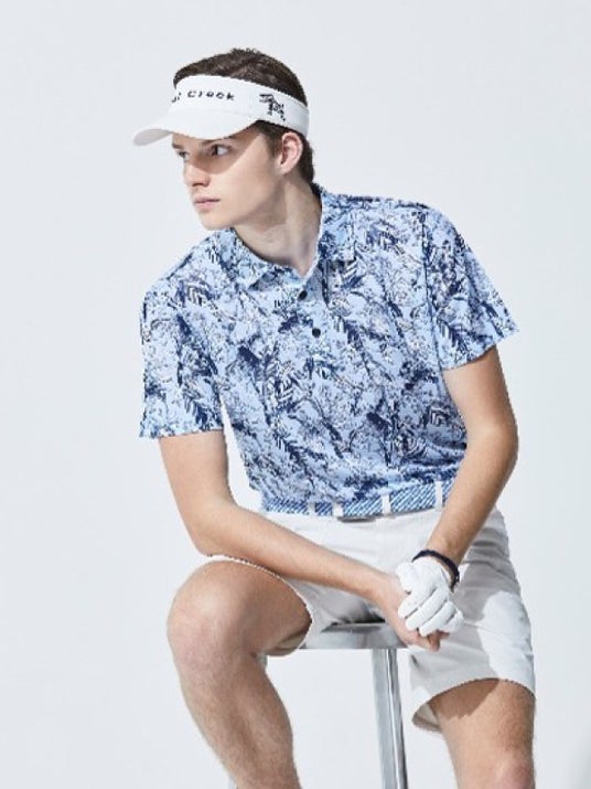 生地の内側に施した特殊なプリントは汗で濡れるとヒンヤリとした効果のある「氷撃」素材。吸水速乾機能もありサラリと着用いただけます。炎天下のプレーに最適!