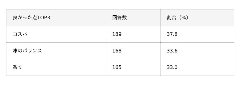 良かったと感じた点TOP3