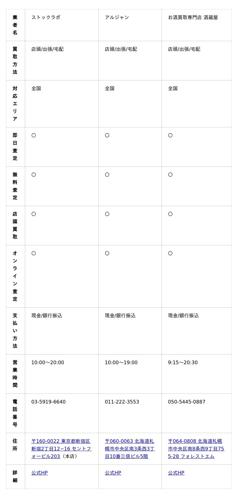 北海道でおすすめのお酒買取業者は以下の3社です。