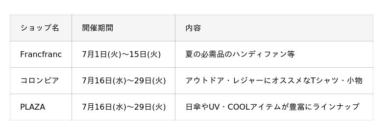 ● 夏にうれしいアイテムに出会えるPOP UP SHOPを展開(千葉駅直結の3Fコンコース)