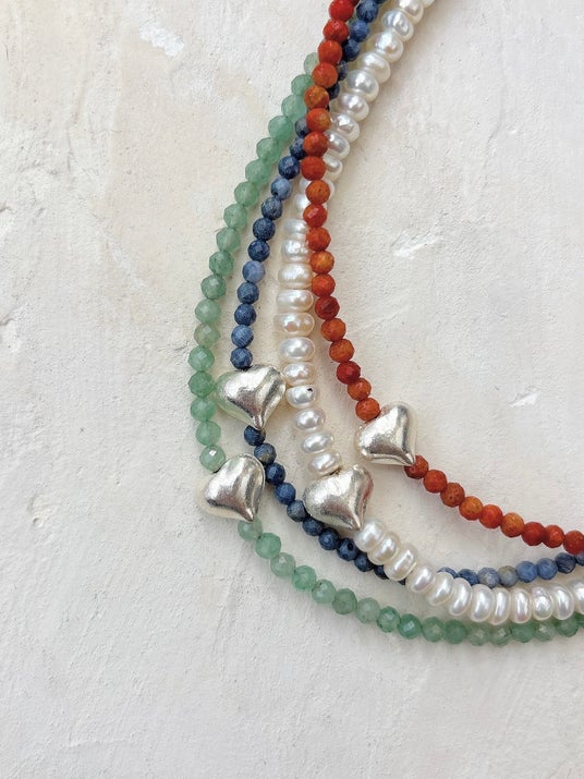 金属は主に14kgf製やsilver925製、使用している天然石やシェルビーズ、パーツなどはインポートが中心。以前、海外ブランド好きが高じて自身で買い付けまでを行い、セレクトショップを運営していたこともあり、その経験を活かし仕入れをしています。