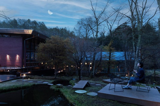 谷の集落に滞在する。離れの客室は水辺を囲み、部屋のテラスからは季節のうつろいが感じられます。「軽井沢野鳥の森」に面した豊かな自然環境にて、休息の時間を満喫できる滞在型の宿泊施設です。