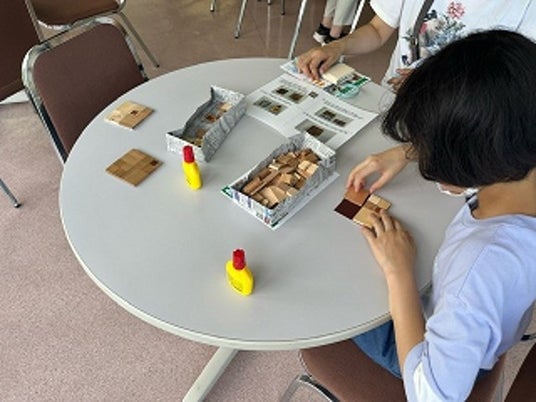 ・黒部ダム流木引き上げの様子の動画視聴、クロベのキセキ(黒部ダム流木)を使ったワークショップ(コースター作り)