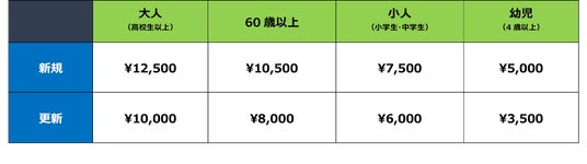幼児(4歳以上)1,300円、60歳以上の方 2,700円