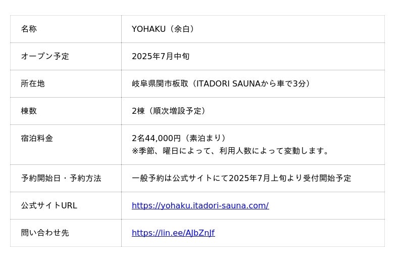 岐阜県の限界集落から"人生に余白"をつくる挑戦。--前売り券販売300万円を突破!ITADORI SAUNAが手がける宿泊施設「YOHAKU」、2025年7月グランドオープン決定!