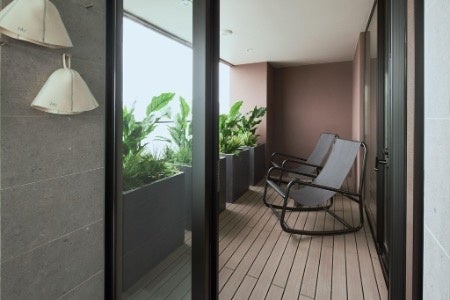 ととのいスペースにはロッキングチェアを配置し、窓を開放できる外気浴設計により、都市の中心部にいながら開放感のある"極上のととのい時間"を提供します。