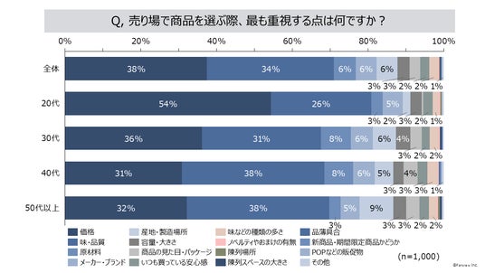 30代以下は「価格」、40代以上は「味・品質」を重視
