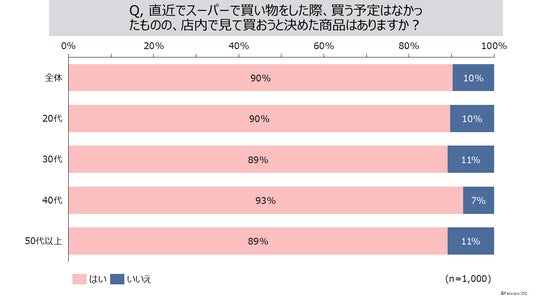 - 買う予定がなかったが、店内で見て買おうと決めた商品がある90%、目に留まったきっかけは「値引きされていた」