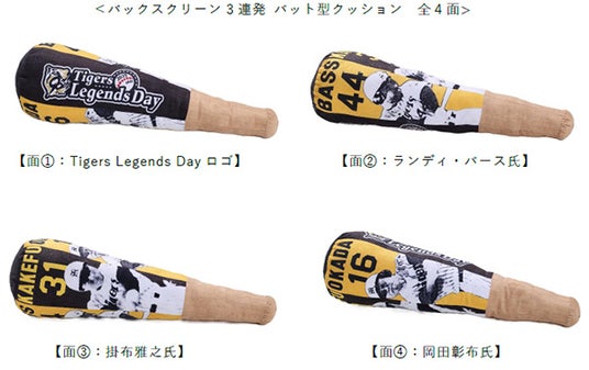 タイガース レジェンズコラボグルメキャンペーン第三弾を開催 ~ランディ・バース氏、掛布雅之氏、岡田彰布氏をデザインした「バックスクリーン3連発 バット型クッション」を90名様にプレゼント~