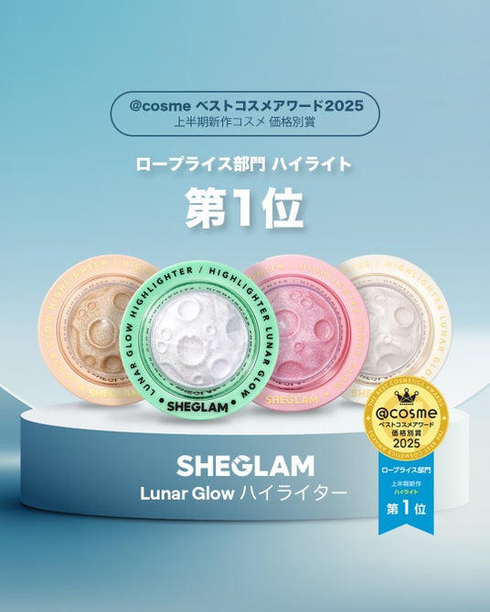 150以上の国と地域で展開するグローバルコスメブランド「SHEGLAM」が手がける『Lunar Glow Highlighter』が、@cosmeベストコスメアワード2025 上半期新作ベストコスメ・ロープライス部門にて、ハイライト第1位を受賞しました。本商品は、全国のバラエティショップおよびオンラインストアにて販売中です。