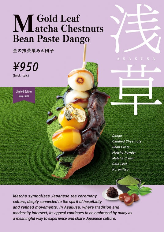 抹茶フルコース揚げサンド千年の歴史を紡ぐ宇治抹茶-茶道に息づく侘び寂びの精神を、Age.3ならではの"揚げサンド"に昇華しました。サクサク揚げパンに抹茶クリームを包み、抹茶パウダーで深緑の景色を描く。黒蜜のコク、あんこの優しい甘み、栗の甘露煮と団子の素朴な味わいが折り重なり、茶席で供される和菓子の流れを一口に凝縮しました。浅草寺の朱門が映える浅草の町並みを感じながら味わえば、伝統と革新が響き合う"日本文化体験"が完成。日本を旅するあなたへ贈る、ここでしか出会えない抹茶の粋をどうぞ。