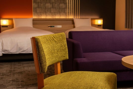 客室のご紹介「武家屋敷」をコンセプトに、和を取り入れたモダンなデザイン。加賀友禅に用いられる加賀五彩の華やかさをプラスしました。伝統的な色彩が奥ゆかしく、ゆったりとしたお時間をお過ごしいただけます。 70平米のラグジュアリースイートや、トリプルやカルテット仕様にも変化し3~4名様でのご宿泊が可能なお部屋が人気。