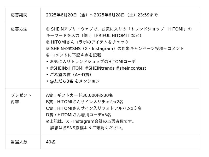 ◆【シーズンモデル就任記念】SHEIN JAPAN初!フォトカードキャンペーン概要