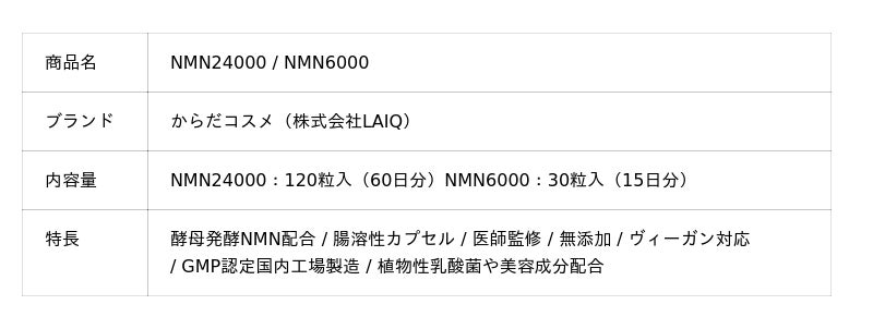 株式会社LAIQ(本社:福岡県福岡市)は、当社が展開するサプリメントブランド「からだコスメ」より販売中の「NMN24000」が、雑誌『MONOQLO(モノクロ)2025年8月号』にて、検証特集「サプリメント最強ランキング120」の老け対策サプリ部門ランキングで第1位を獲得したことをお知らせいたします。