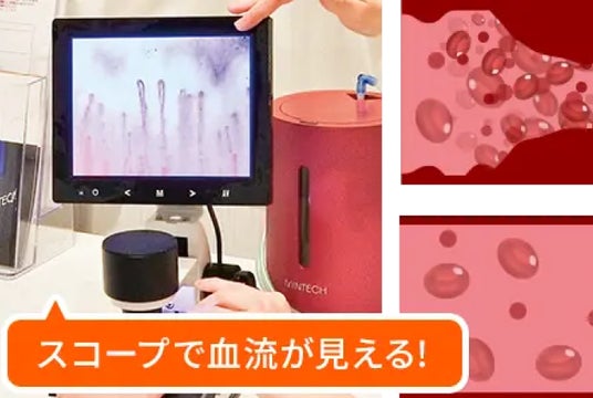 血流を実際に見ることができる特殊なスコープを設置しています。運動前後での血流の違いにビックリする方も!? ほかの施設にはない特別な健康チェックです。