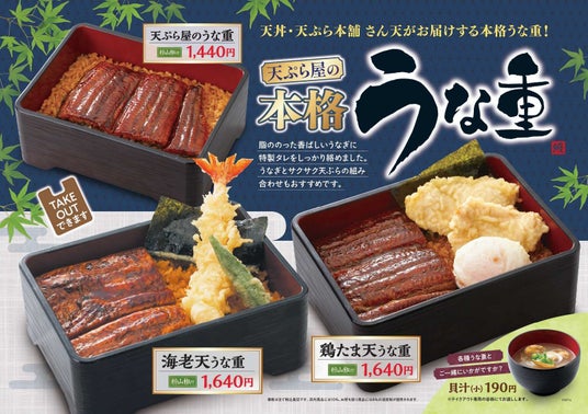 鶏たま天うな重 1640円(税込み)天ぷら×うなぎのコラボ商品です。