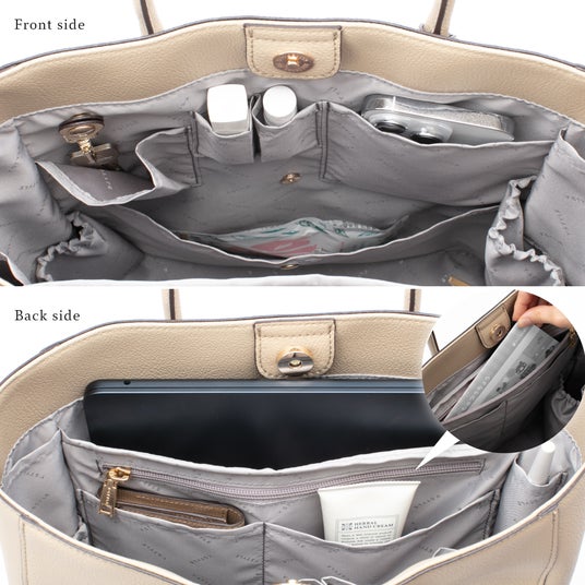 ビジネスシーンはもちろん、学校訪問やオケージョン、ちょっとしたお出掛けなど、きれいめスタイルに合わせやすい縦型トートで、ファッションの幅がぐっと広がります。