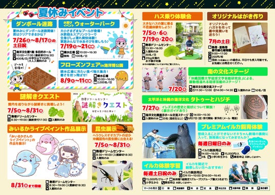 そのほか、ハス乗り体験会やオリジナルはがき作りなど、夏休みの自由研究にピッタリなイベントが充実!この機会にぜひ、家族みんなで海洋博公園にお越しください!