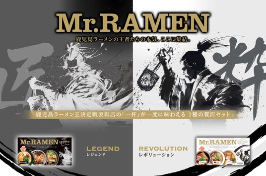 新たなMr.RAMENは歴代常勝店の3店舗を詰め合わせた「Mr.RAMEN~レジェンド~」と、革新的な一杯で人気を博した3店舗を詰め合わせた「Mr.RAMEN~レボリューション~」の2種類で展開します。