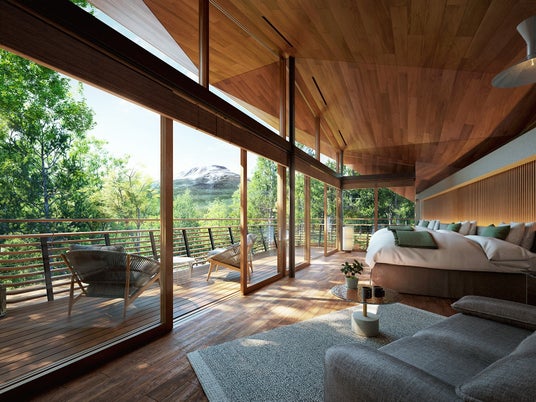 お部屋は、最大8名様でご滞在いただける2ベッドルーム&2バスルームを備え、ダイニングとひと続きになった開放的なリビング、心身ともに整う天然温泉とサウナがあり、ライフスタイルに合わせた様々な過ごし方で至福のひとときをお過ごしいただけます。お食事や各種ご予約の手配は、現地のコンシェルジュがサポートし、ハウスキーピングやメンテナンスは専属スタッフが行うなど心地よいご滞在をお届けいたします。